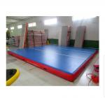 KEP PRODUCT FEATURES: Material: PVC drop stitches, special for a gym mat Accessories(free): CE/UL air pump, repair kit, instruction Usage: gymnastics, cheerleaders, competitive sports, Color: Blue Surface-red Side-White Middle Stripe Delivery Time:10-15 days for production, about 2 weeks for shipping at the moment due to the inquiry.